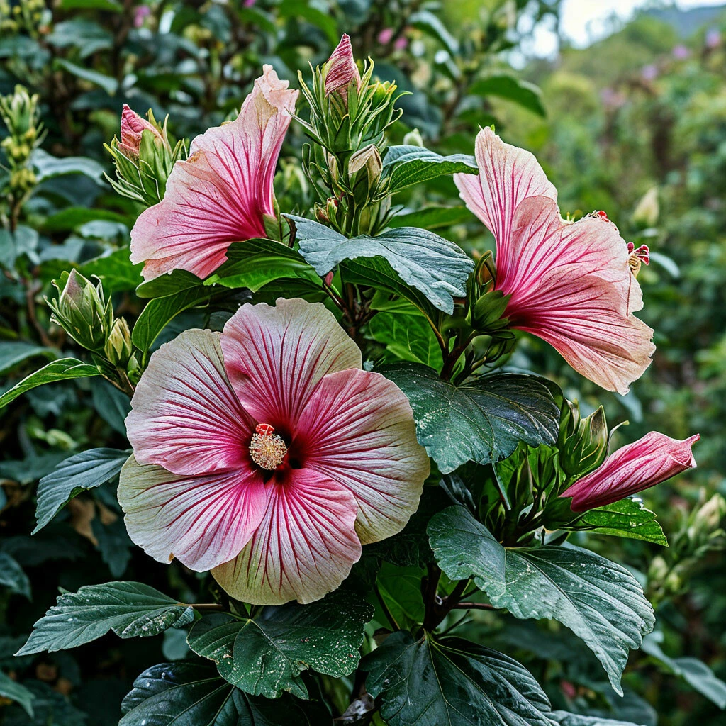 - Высота растения: Гибискус “Иден Бьюти” — это среднерослый куст, достигающий в высоту 1,5-2 метра. Он отлично подходит для создания живых изгородей, одиночных посадок и выращивания в контейнерах.